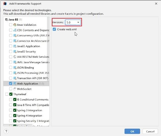 再重新勾选web application,选择5.0版本