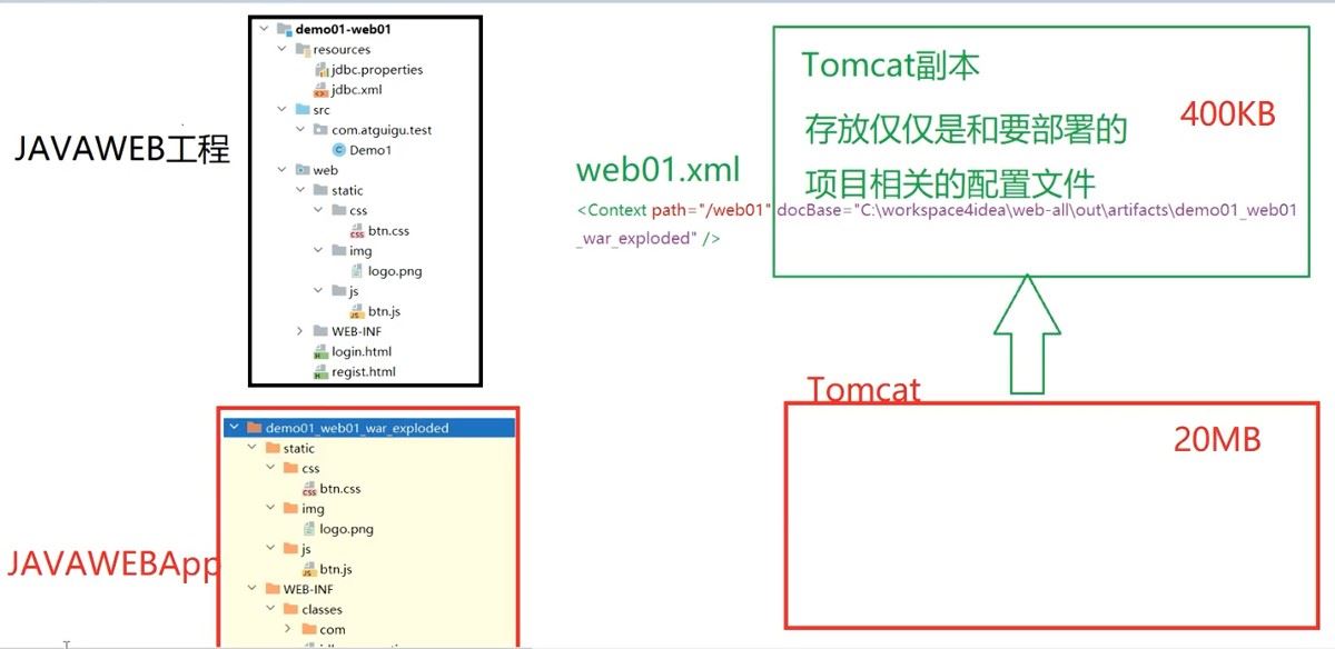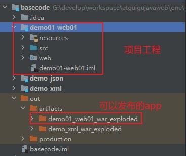 - web对应demo01_web01_war_exploded,demo01_web01_war_exploded就是可以在tomcat中发布的app;