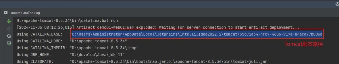 idea根据关联的tomcat,创建了一个tomcat副本,将项目部署到了这个副本中