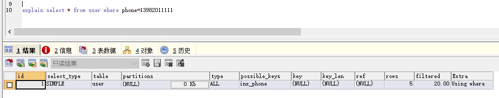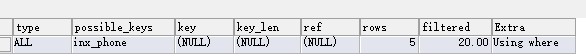 原因:mysql将phone字段自动转换为数字类型,导致索引失效