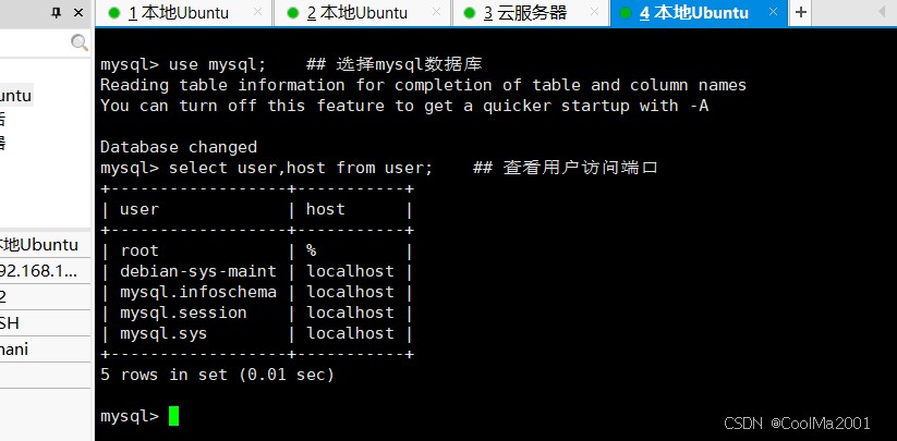 select user,host from user; ## 查看用户访问端口