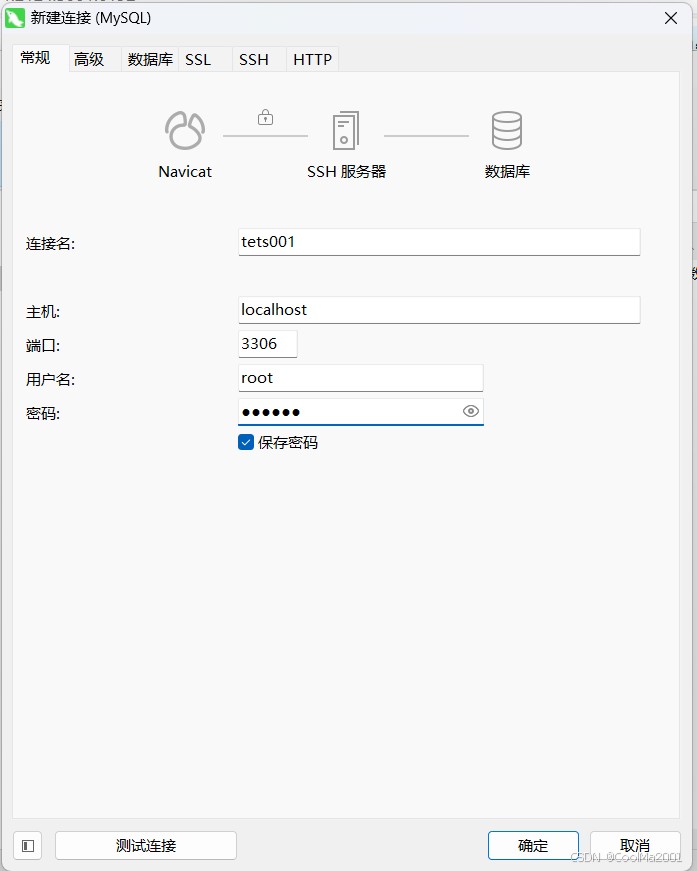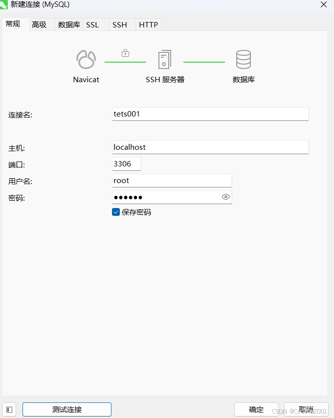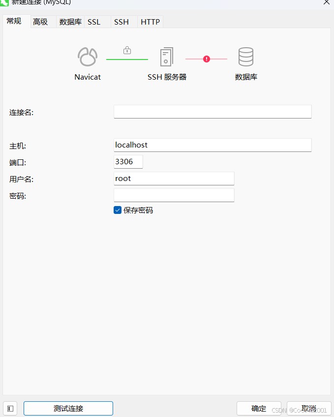 打开navicat,点击连接,新建连接,进入这个界面