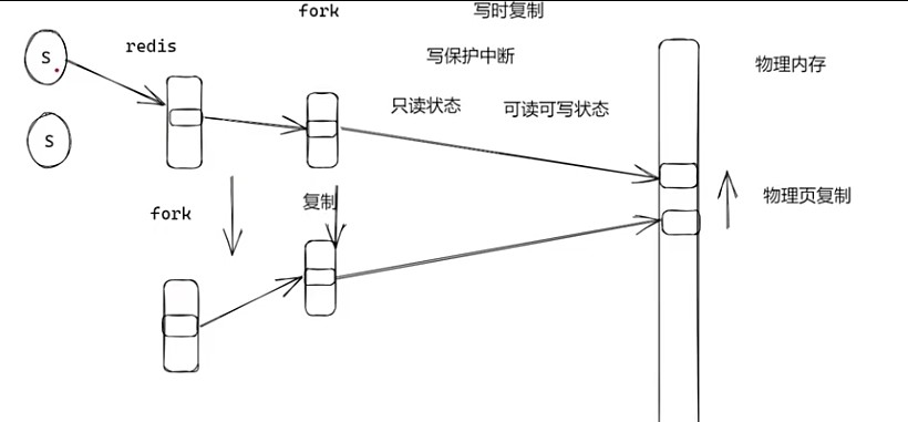 父进程复制一块虚拟内存页表给子进程,同时二者设置为可读,二者虚拟内存映射到同一块物理页。只有其中的任意一个进程试图修改一个共享的只读物理页面时(例如,修改一个全局变量或在堆上分配新内存),才会写保护中断触发,物理页复制,谁修改,谁指向新的,把只读状态修改为可读可写状态。