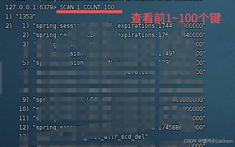 如果生产数据的redis的键太多了,不建议全部查看,而是查询一部分,比如:查询前100个。