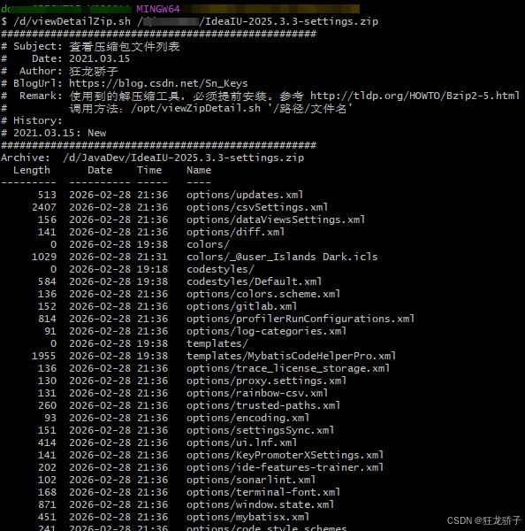2、查看压缩包文件列表shell脚本