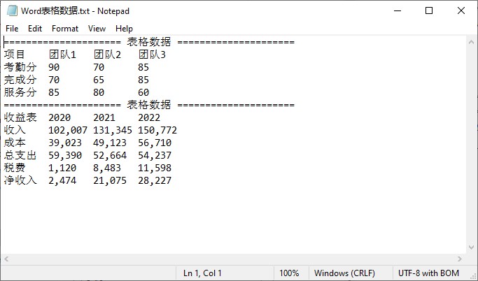 生成的word表格数据.txt文件: