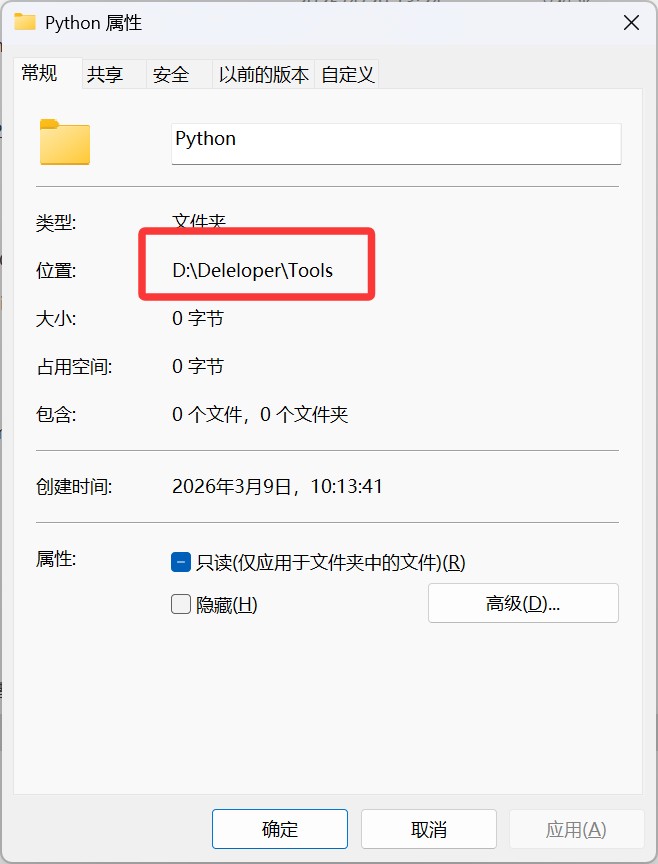 准备一个空文件夹,要求目录不能包含中文和空格,用于存放关于编程的工具,并在里面建立python空文件夹,可以右键文件夹查看目录是否包含中文和空格。