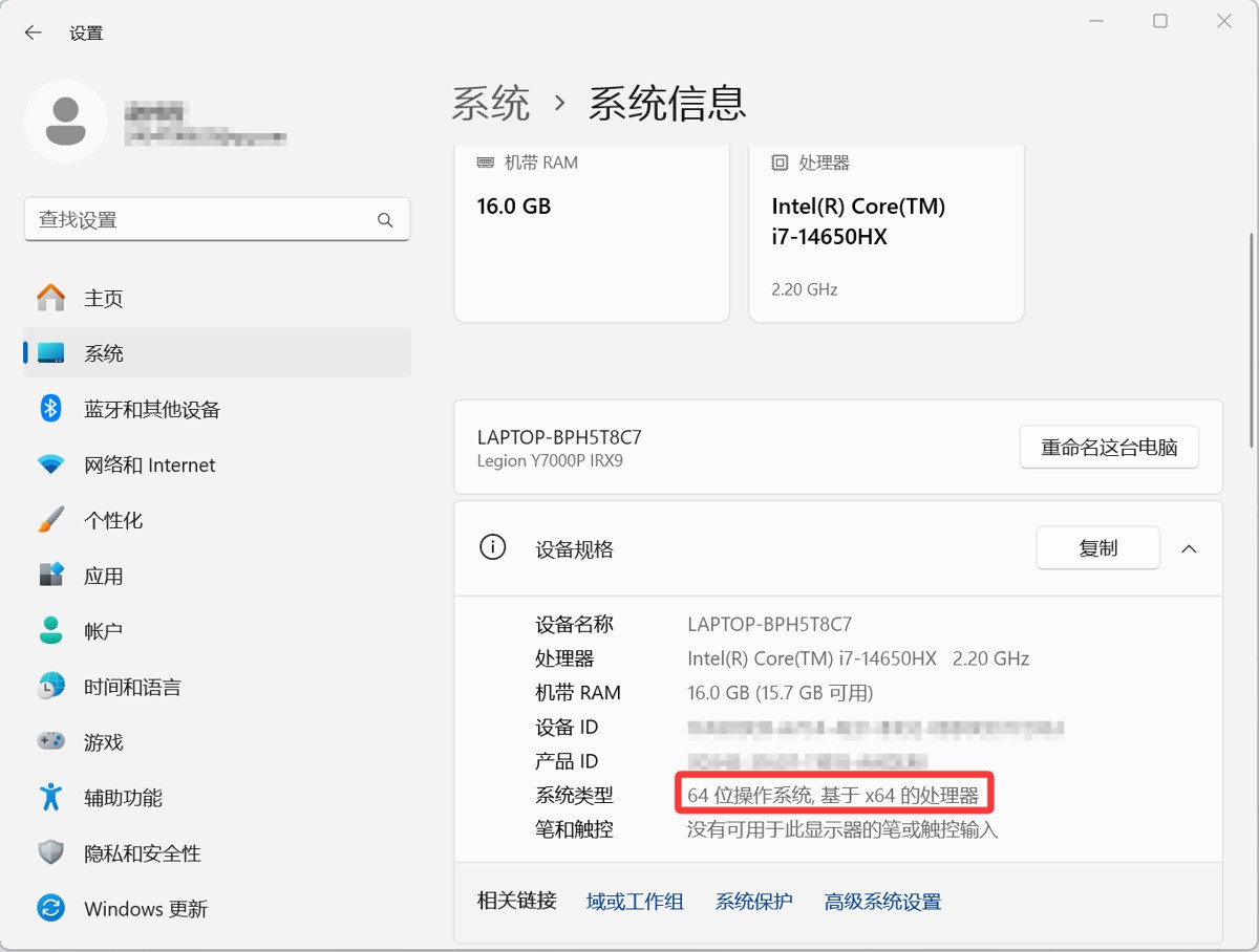 拓充:可以通过在电脑设置 → 系统 → 系统信息中查看