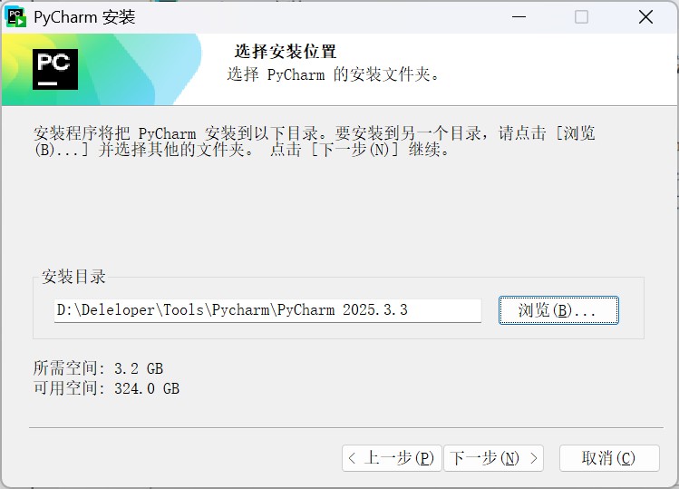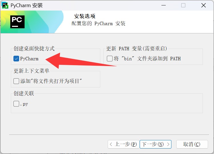 更改 pycharm 的安装目录,点击下一步