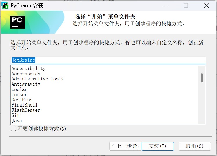 准备一个空文件夹 pycharm 备用,要求目录不能包含中文和空格。