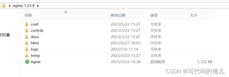 会有以下文件,找到conf下的nginx,此文件为nginx的配置文件