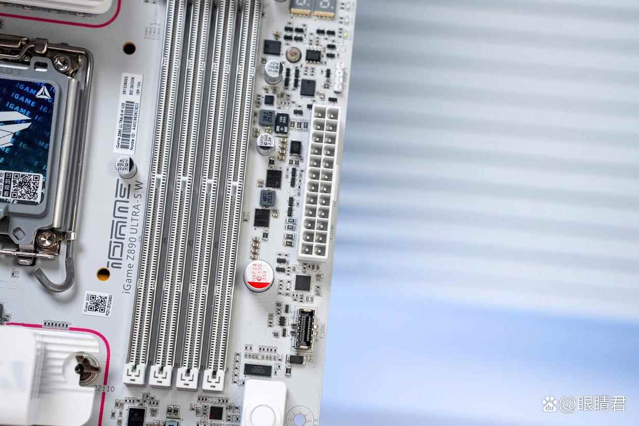 新板的内存频率支持有显著提升,最大支持9600mt/s ddr5内存,这里一方面是新款酷睿ultra 200s plus处理器内存支持提升到了原生7200mt/s,另一方面则是源于z890 ultra-s主板采用的8层高电气低损耗pcb,并且优化了内存布线设计。