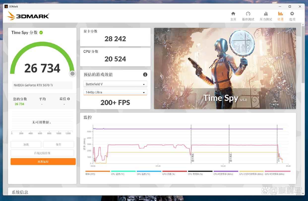 time spy基准测试,cpu得分20524分。