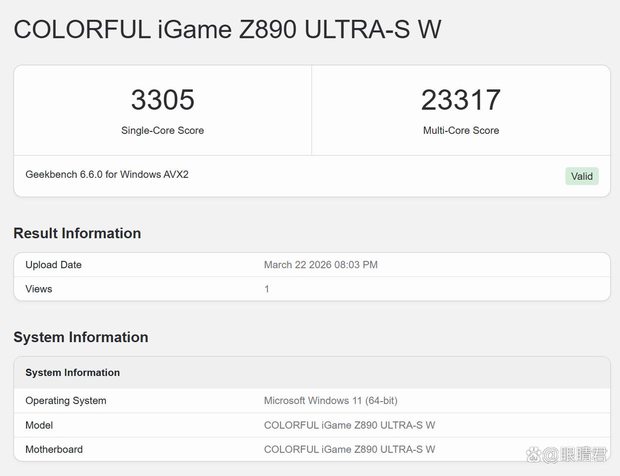 geekbench 6基准测试,ultra 7 270k plus单核得分3305分,多核得分23317分。