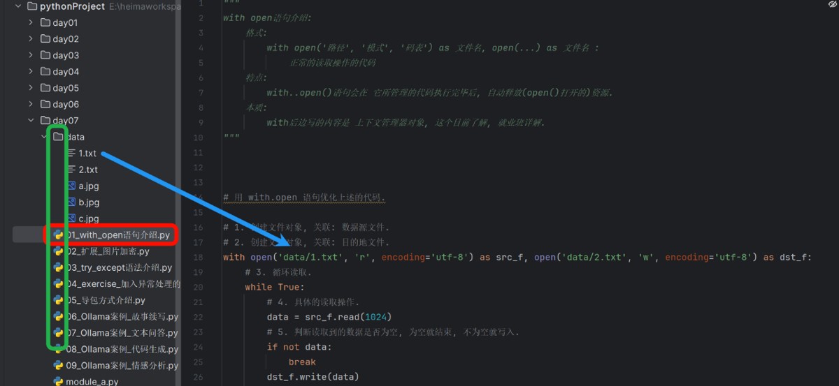 如下示例,data与01脚本文件(文件名尽量不要数字开头)同级别,在01脚本文件中引用同级data中的1.txt方式如下: