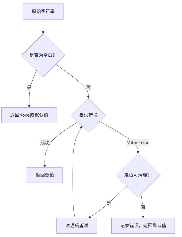 最常见错误是字符串包含非数字字符。考虑这个场景: