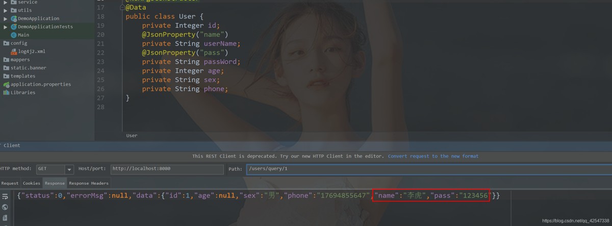 我们也可以使用@jsonproperty 注解来绑定json中的key和bean实体的属性