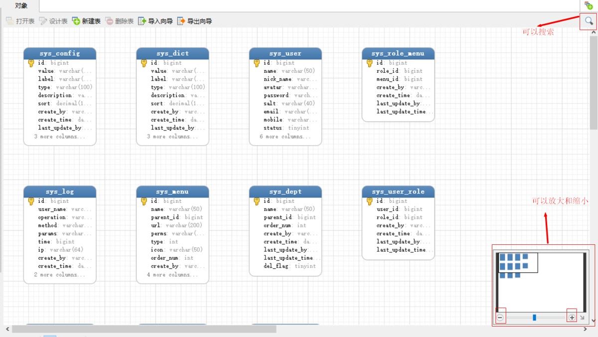 - 点击er图表,就可以看到数据库的er图