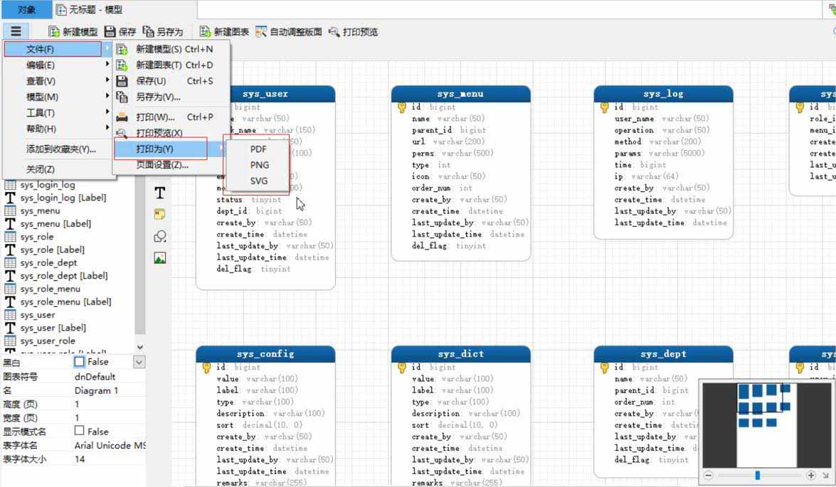 - 这里选择pdf,打印的er图: