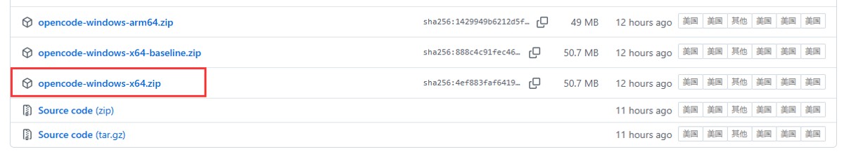 其实这个时候是后台在下载opencode的安装包,只不过界面没有明确的提示。可能由于网络原因下载失败,导致对话框无法使用。如果有网络原因,也可以从github手动下载。