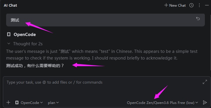 由于opencode高版本中,必须登录之后才能使用,如果初次使用需要认证输入api key,这个自行申请即可。
