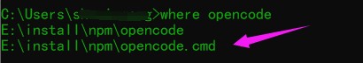 "command": "e:\install\npm\opencode.cmd", // 如 "opencode", "python", "node" 等