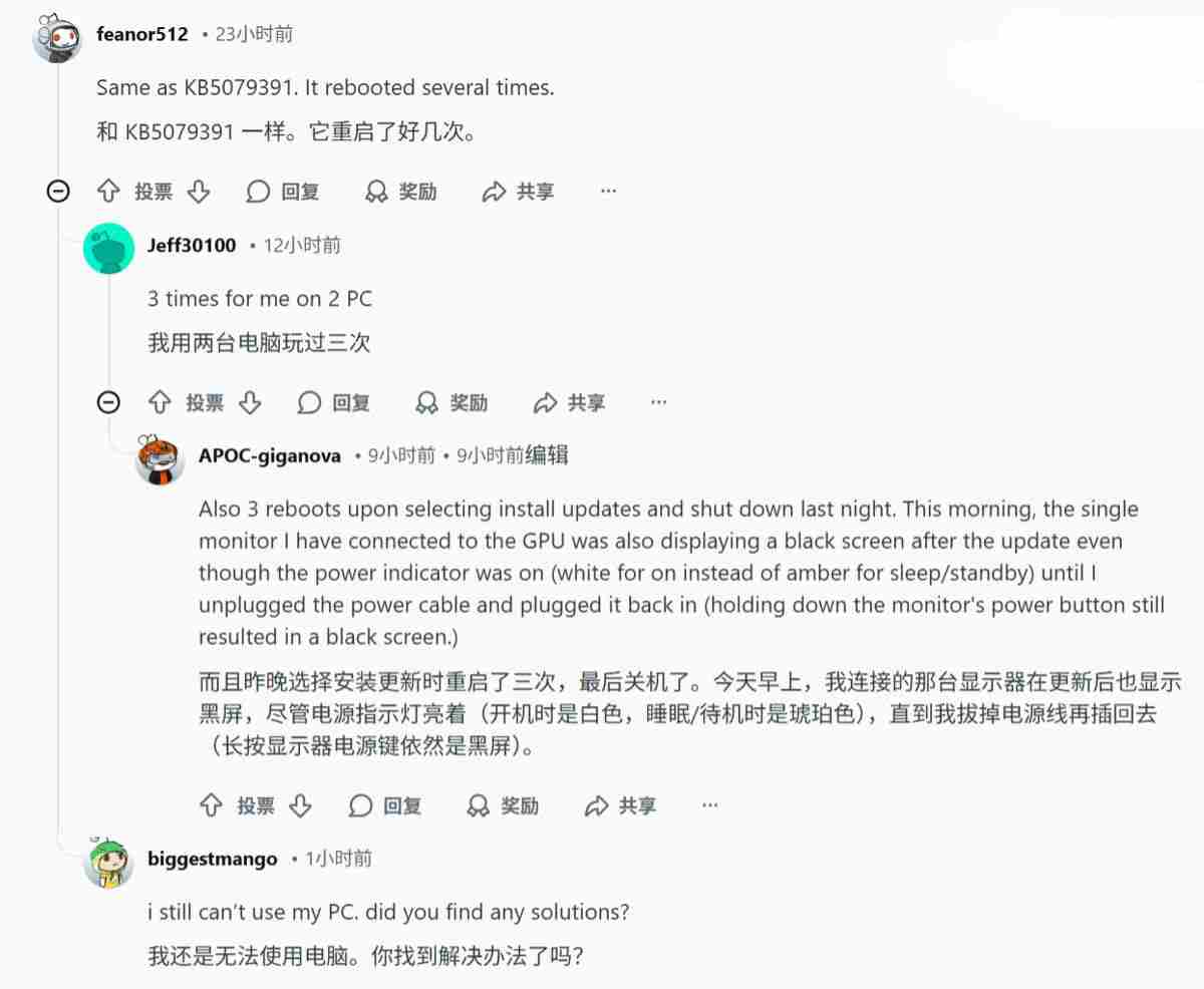 此外还有网友反馈安装更新后 usb 接口异常。