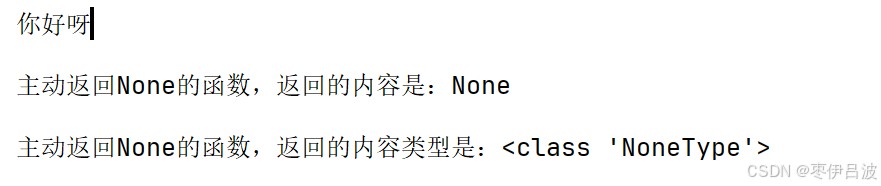 print(f"主动返回none的函数,返回的内容是:{result}")