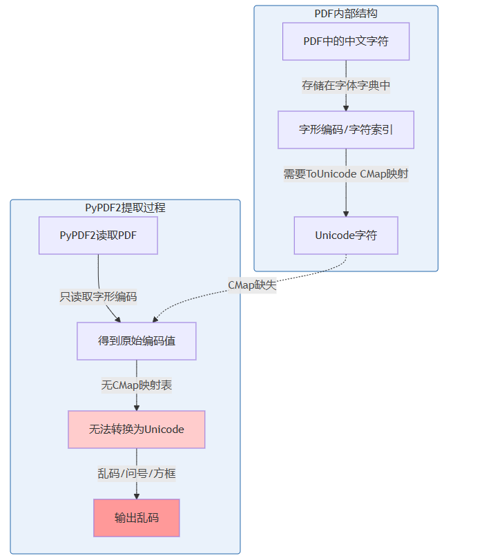| 中文乱码 | 根源在于字体编码映射缺失,推荐pdfplumber替代 |