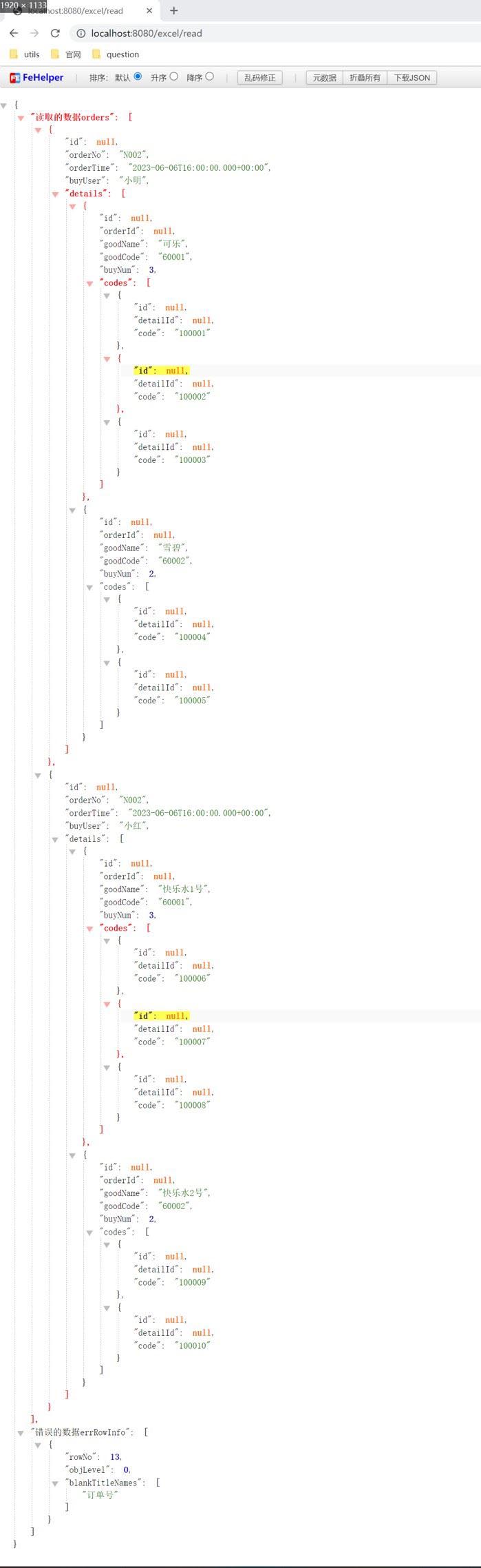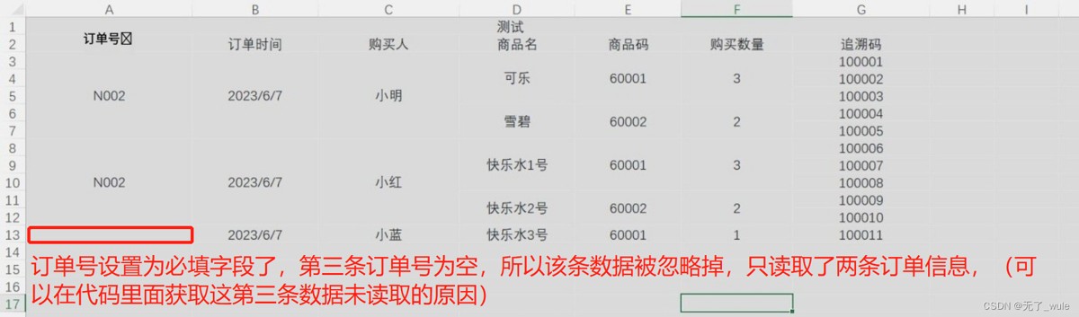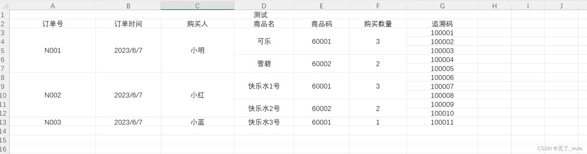 我导出测试的数据直接读取的exel,下面是读取的excel图