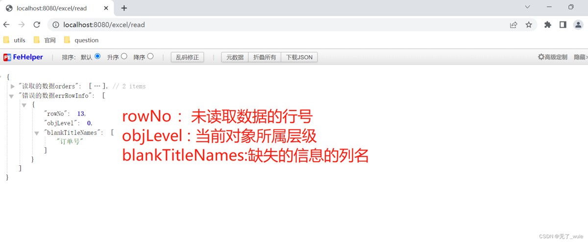 rs.put("错误的数据errrowinfo", errrowinfos);