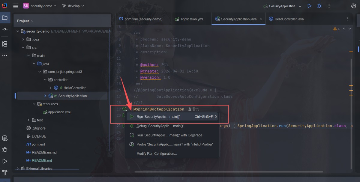 启动 securityapplication