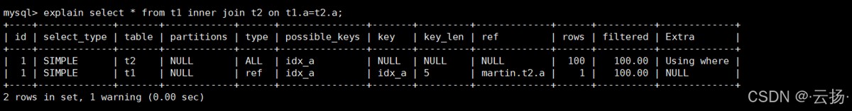explain select * from t1 inner join t2 on t1.a = t2.a;