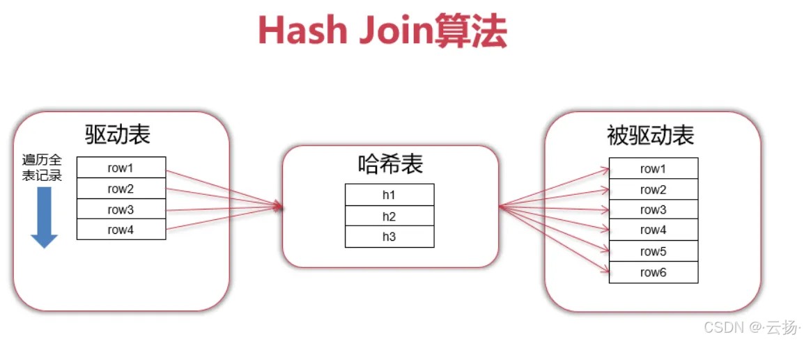 - 将驱动表数据加载到内存,构建“关联字段→行数据”的哈希表;