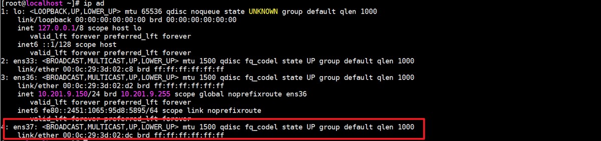 4: ens37: <broadcast,multicast,up,lower_up> mtu 1500 qdisc fq_codel state up group default qlen 1000