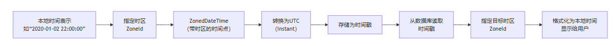 下面的mermaid图清晰地展示了从本地时间表示到utc存储,再到展示的过程: