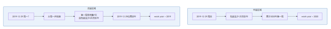 输出居然是2020年!原因是大写y表示“week year”(周所在的年份),而2019年12月29日属于2020年的第一周(取决于区域设置)。下图展示了week year的计算规则: