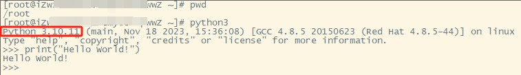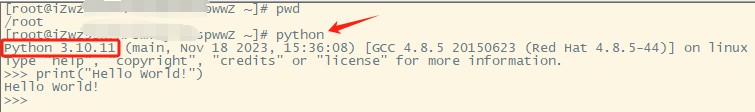 rm -f /usr/bin/python #建立新的软链接 ln -s /usr/local/python3.10.11/bin/python3.10 /usr/bin/python #任意目录执行python即可查看效果 python