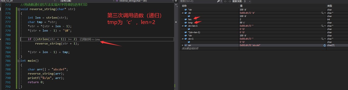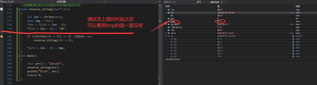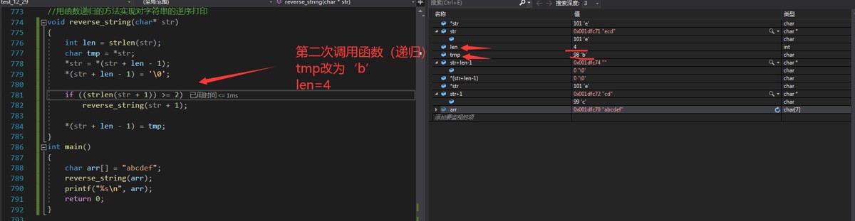 这里的 tmp 和 len 的值可以通过调试来观察变化!如下图!