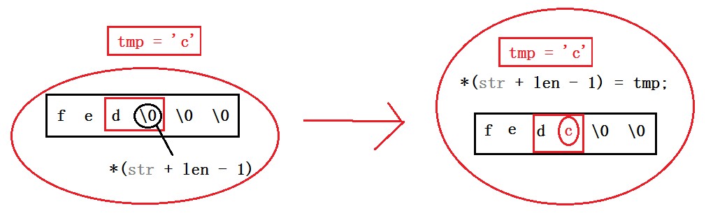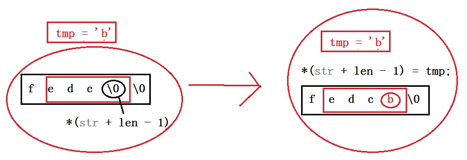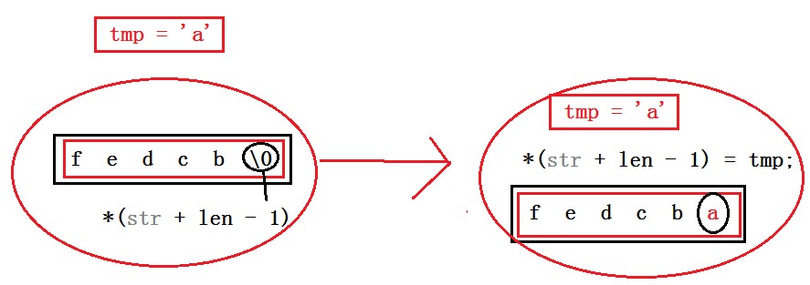 *(str + len - 1) = tmp;