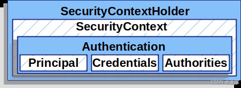 总结起来,securitycontextholder用于管理当前线程的安全上下文,存储已认证用户的详细信息,其中包含了securitycontext对象,该对象包含了authentication对象,后者表示用户的身份验证信息,包括principal(用户的身份标识)和credential(用户的凭证信息)。