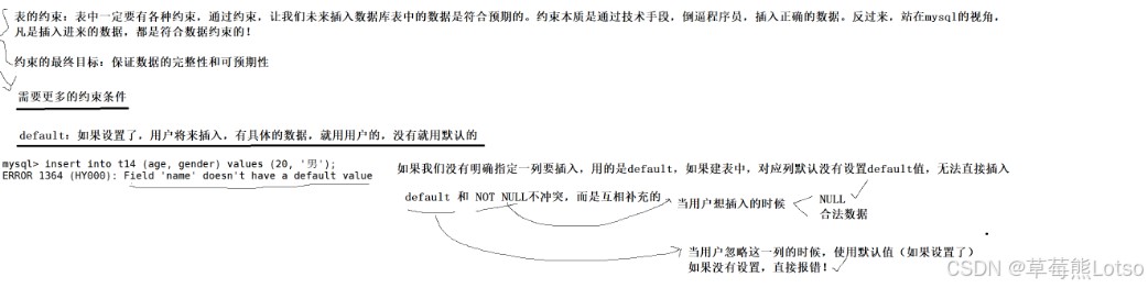 -- 报错:error 1364 (hy000): field 'class_room' doesn't have a default value2.2 默认值约束(default)