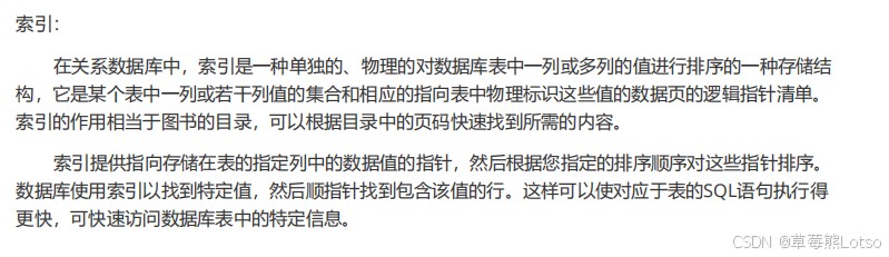 | 外键约束(foreign key) | 用于关联两张表,保证数据的一致性和完整性。 |