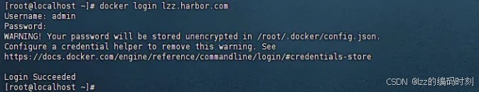 # 登录 harbor docker login lzz.harbor.com # 使用默认账号密码 # 用户名: admin # 密码: harbor12345 (如果你修改过配置文件中的密码,使用修改后的密码)