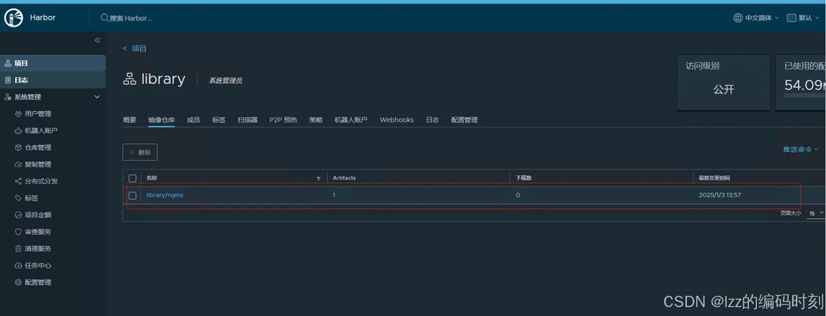 # 标记镜像 docker tag nginx:latest lzz.harbor.com/library/nginx:v1 # 推送镜像 docker push lzz.harbor.com/library/nginx:v1 # 拉取镜像 docker pull lzz.harbor.com/library/nginx:v1