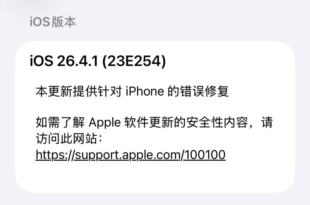 ios 26.4.1 正式版并没有带来新功能,主要是修复错误,提升稳定性