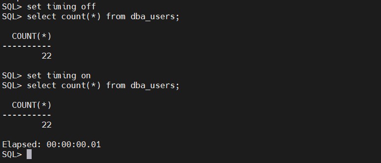 通常在执行一条sql语句的时候,我们往往是想要知道一条sql的执行时间到底花费了多久,这个时候,就可以使用set timing on