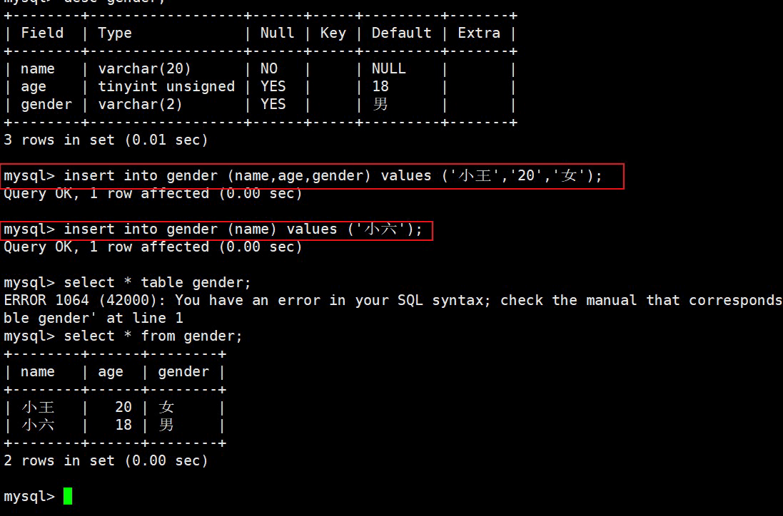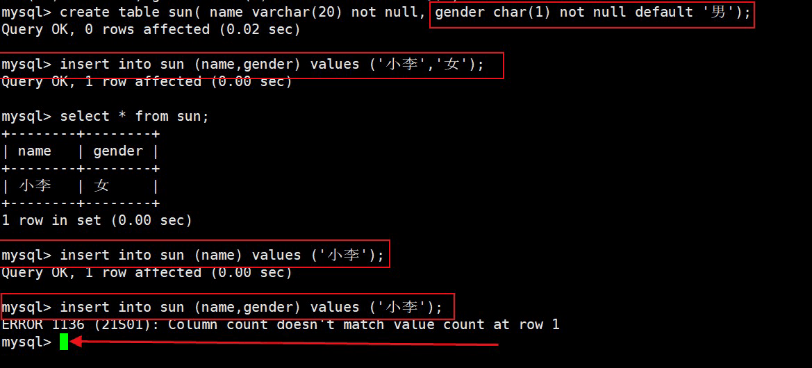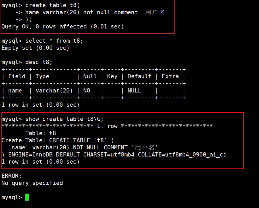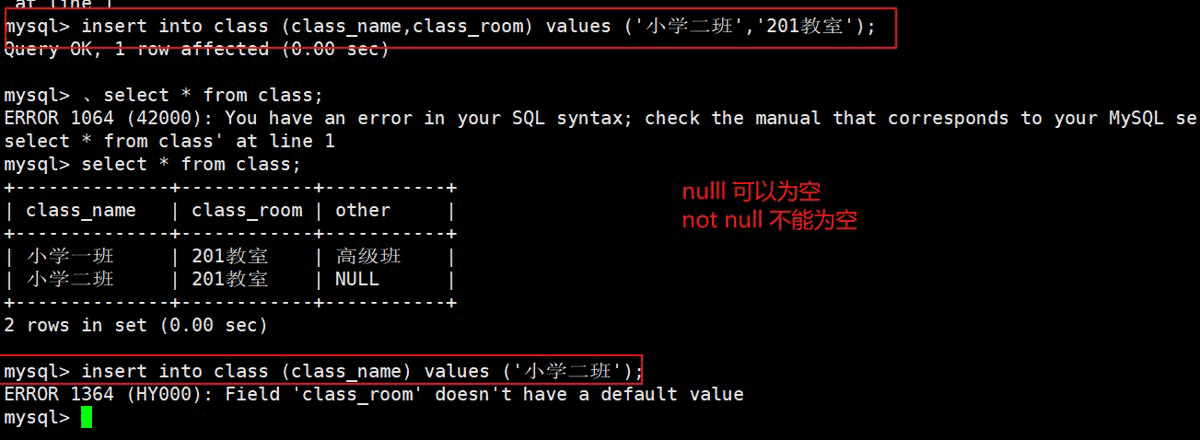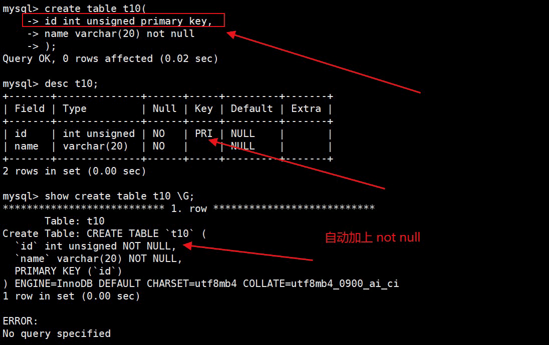 注意:如果我们的表中没有设置 default 和 not null 约束,他默认 default null,如果设置了 not null 则不会有 default null;