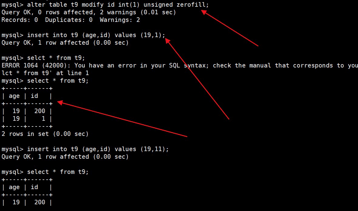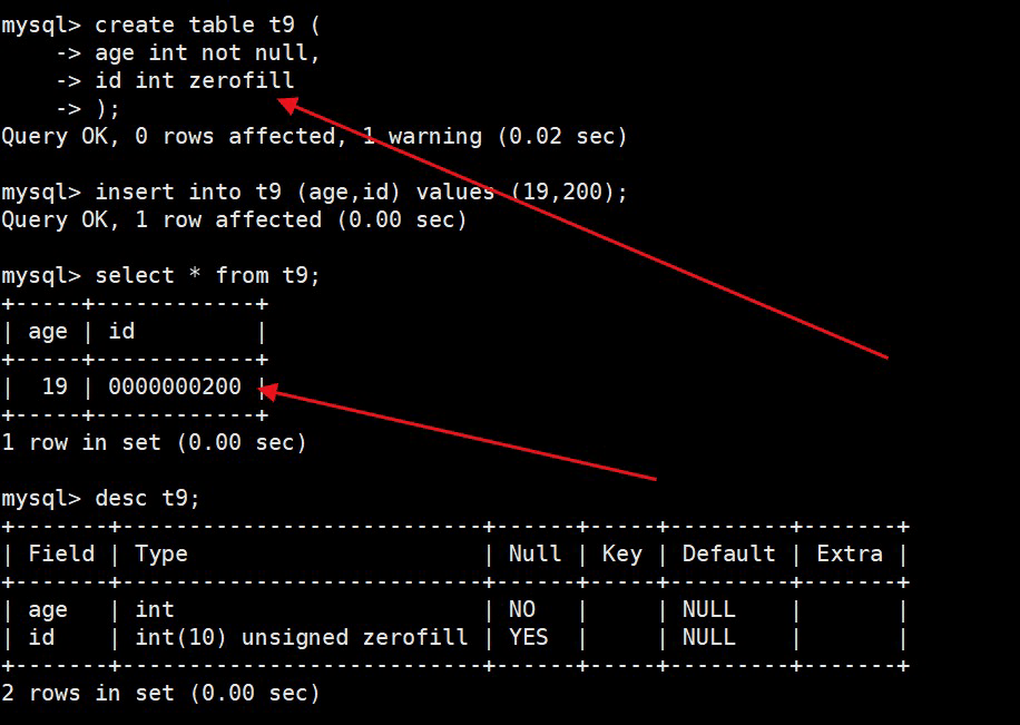 四、zerofill 约束