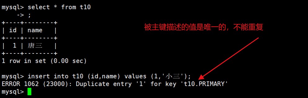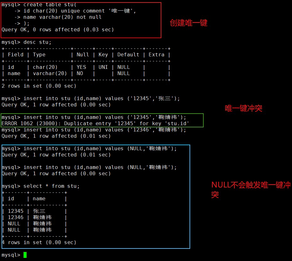 注意:一张表中只能有一个主键,但是可以有多个唯一键;